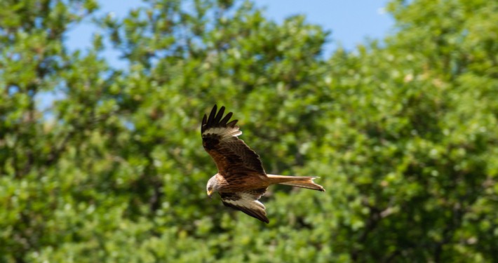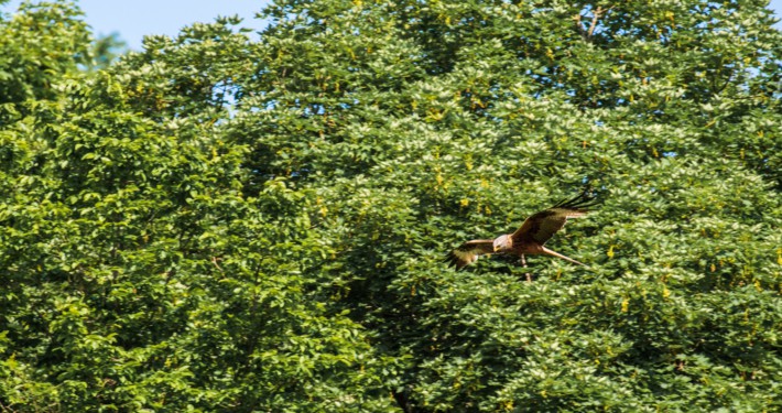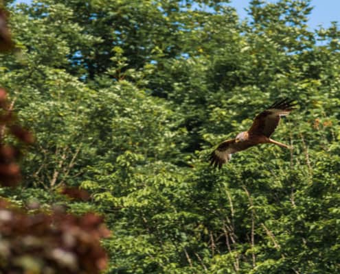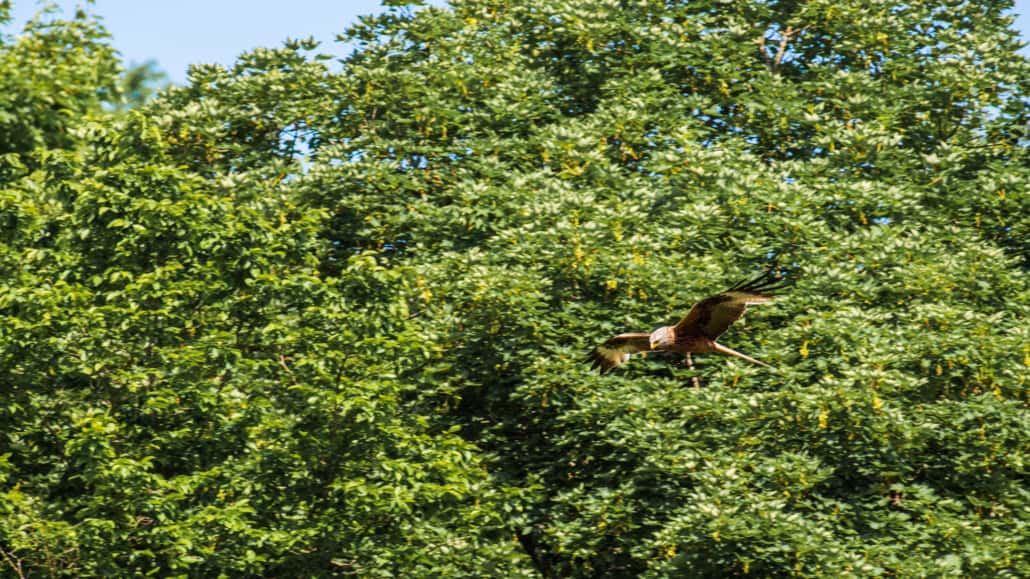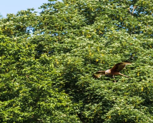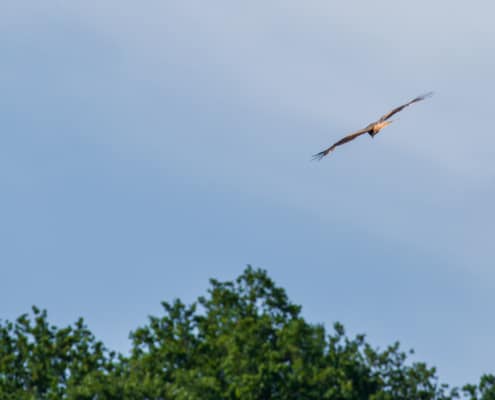 Toen de vogel in het vizier kwam, zagen we dat het (waarschijnlijk) een rode wouw is. De instellingen van mijn camera stonden niet perfect, maar desondanks heb ik een paar mooie plaatjes kunnen maken.