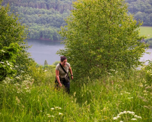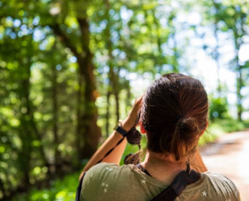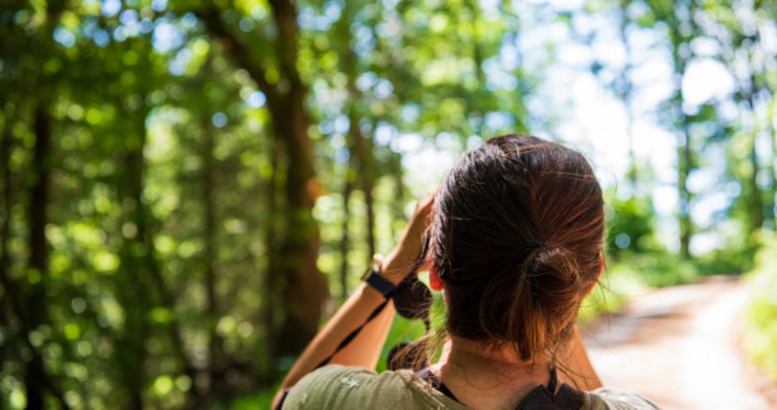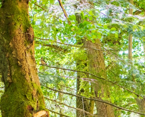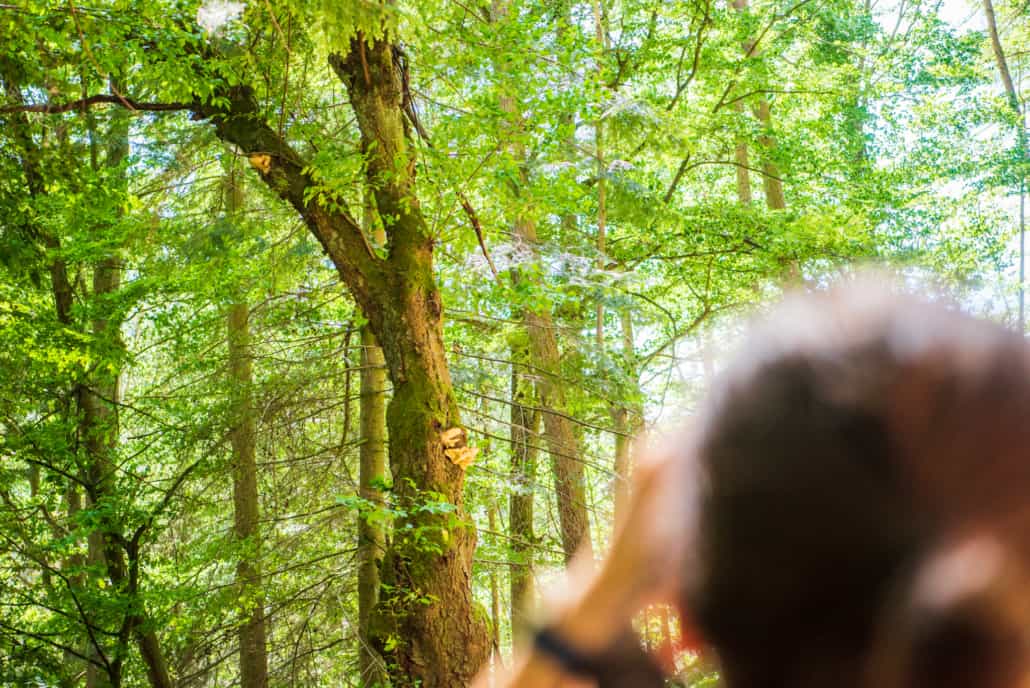 Als wij samen wandelen in de bossen, dan genieten wij van de natuur. We kijken niet alleen naar de uitzichten, bomen en dieren, maar we luisteren ook. Zo kwamen we vandaag via een pad waar we opvallend veel gepiep hoorden. We stopten en zochten in stilte naar het dier wat dit geluid maakte.