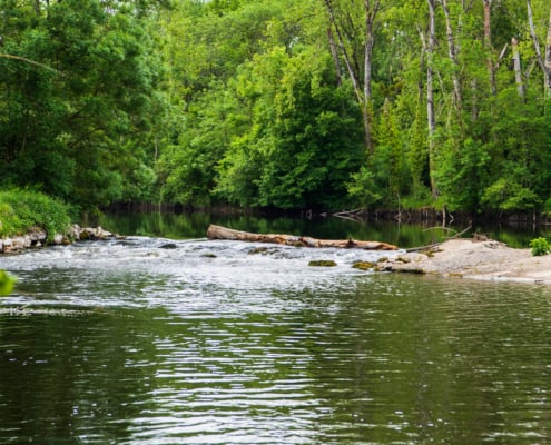 Zoals ik gisteren al schreef zouden we vandaag naar een andere waterval van de rivier gaan waarbij we aan de goede kant van de val zouden komen. Na een wandeling van een klein half uurtje kwamen we aan op de plek waar ook zo’n brede waterval zou zijn. Over de hele breedte van de rivier, maar bij aankomst viel dat vies tegen. Het was vooral beton waar we op neer keken en slechts door een heel smal stuk stroomde wat water. Zonder echte voldoening liepen we via een andere route weer terug naar onze camper voor het ontbijt.