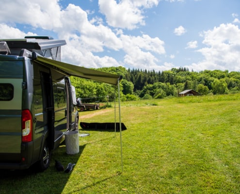 Bij aankomst werden we heel vriendelijk ontvangen door onze gastheer voor de komende dagen. We praatten wat bij, we kregen een rondleiding over het terrein, en hij in onze bus en konden hier dan eindelijk de was echt doen. De ligging van dit terrein is echt bijzonder mooi. Doordat het op een helling ligt heb je mooi uitzicht, en staan de tenten er al mooi bij. Helemaal onderaan de heuvel eindig je bij een bergmeertje, met daarop een vlonder en aan de rand de tent met het beste uitzicht (als je het mij vraagt).