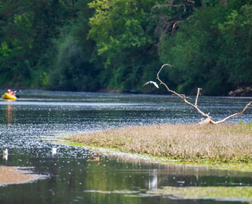 De plek op zich was erg mooi door de ligging aan de rivierbedding. Daarom ben ik ook met mijn camera en super-telelens op pad gegaan, op zoek naar de vogels die ik al zag vliegen. Jammer genoeg kwamen er ook veel toeristen in een kano voorbij, waardoor de vogels nooit lang bleven zitten en ik zonder veel succes terug ging.