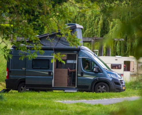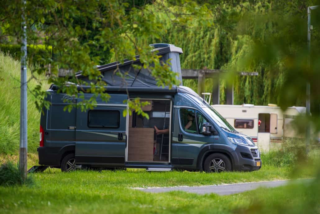 Bij aankomst zag het er druk uit. Er stonden veel busjes, caravans en waterslangen en stroomkabels over het pad. Het bleek al snel dat hier een semi-permanente verblijfplaats is ontstaan, waarover we in een review uit 2019 al iets hadden zien staan. We voelde ons hier prima en waren te vermoeid om verder te zoeken naar een nieuwe plek, we waren namelijk al zo’n vier uur aan het reizen.