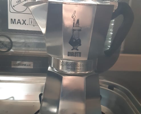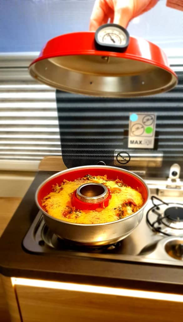 En is de pan waar de lasagne is gemaakt, lijkt een moderne wonderpan….. (Zoiets heb ik ooit voor Kirsten geregeld)