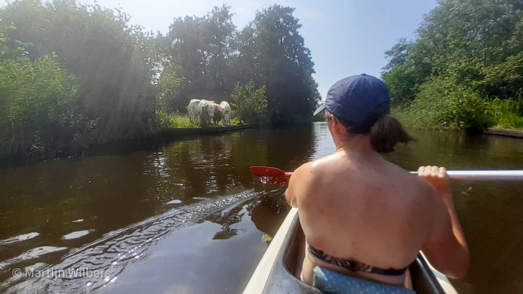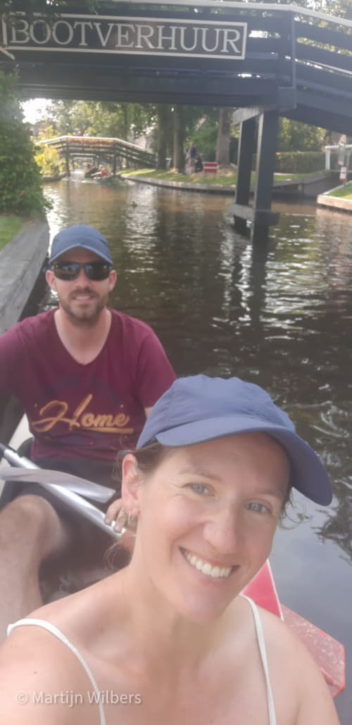 Dat zoeken is dan niet heel moeilijk. Ik kreeg het idee dat elke inwoner van Giethoorn ook meteen een kano’s of fluisterbootjes verhuurd. We hebben ons heerlijk kunnen afkoelen op het water. Wel is het, waarschijnlijk net als in Venetië, veel te toeristisch. Met onze kano begonnen we praktisch al in de file op het kanaal. En bij terugkomst was het nog veel drukker. Op zich is zo’n kano dan wel praktisch voor de anderhalve meter afstand.