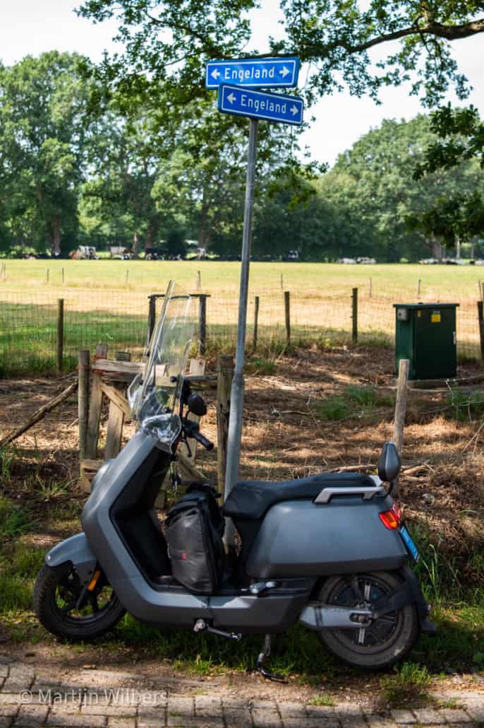 Inmiddels staan we op een mini-camping in Koekange waar we morgenvroeg weer vertrekken. Ook hier hebben we praktisch weinig gedaan en alleen naar de Formule 1 gekeken en een rondje op de scooter gemaakt. Tijdens dat scootertripje kwamen we zelf nog heel even door / langs Engeland af. We konden het dus niet laten om daarvan nog een foto te maken.