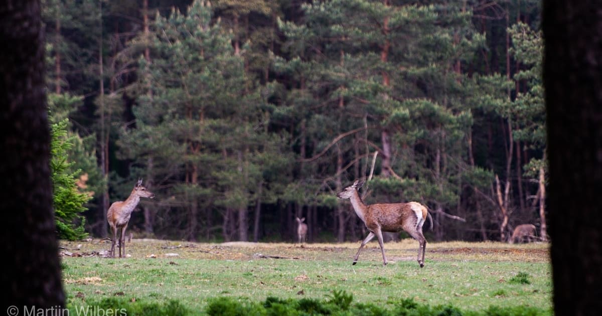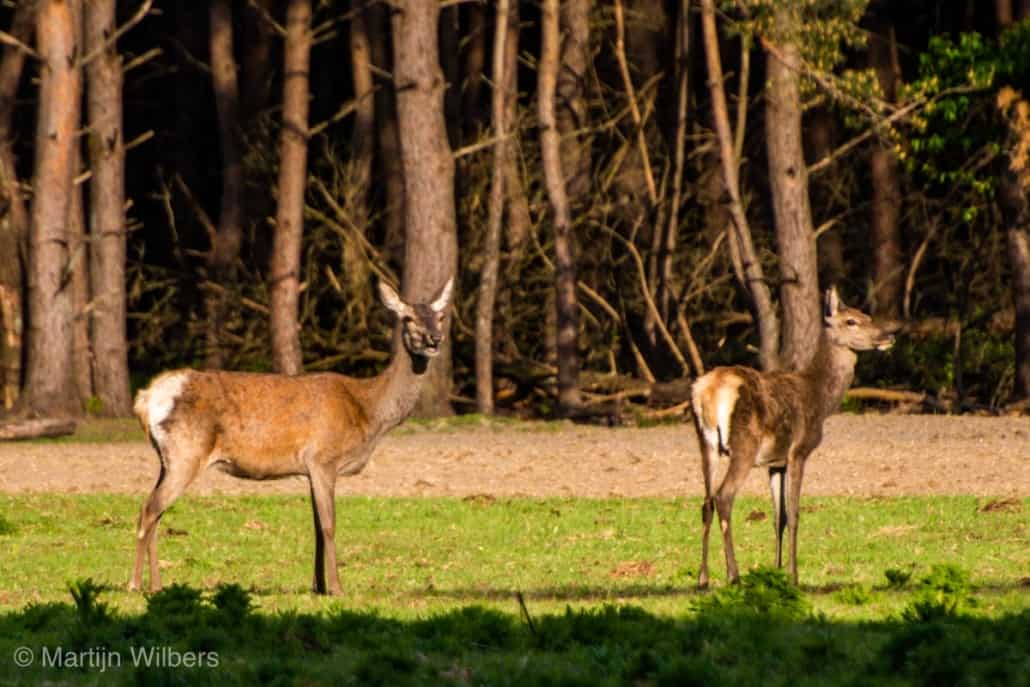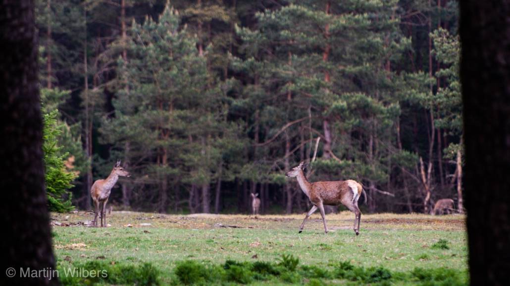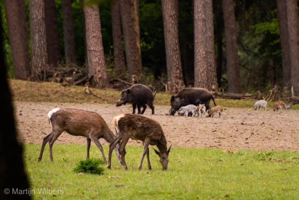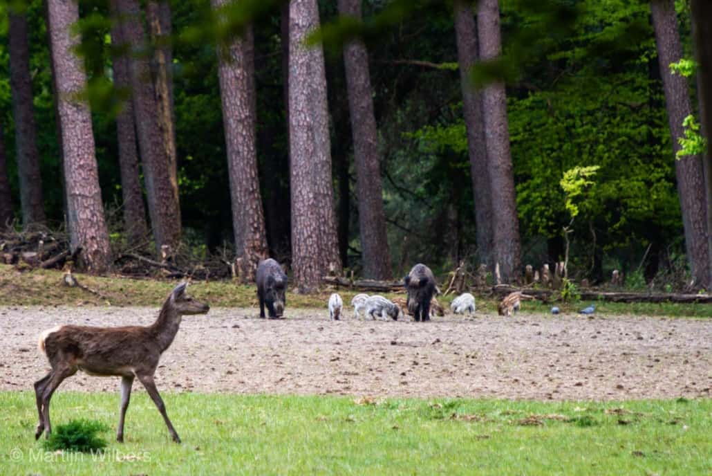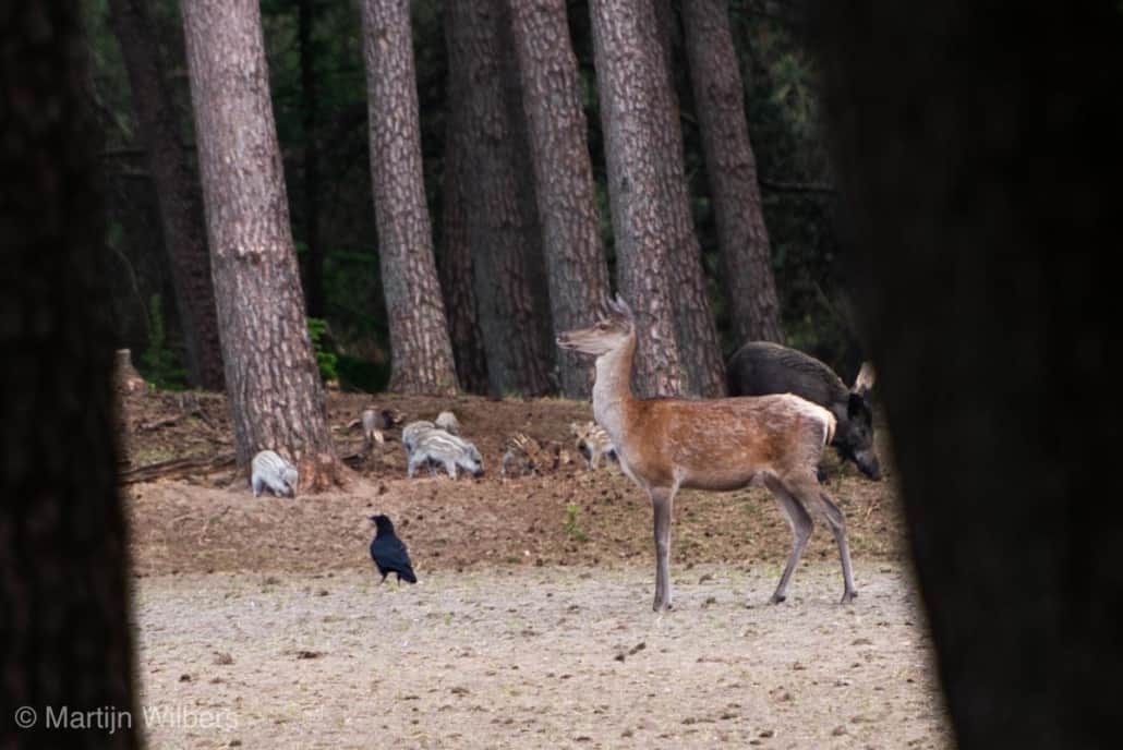 Vrijwel direct zagen we 2 grote zwijnen, met wel zo’n tien jonkies. En niet veel later kwamen er ook steeds meer herten op het veld. Op een moment stonden er zeker negen op het veld, heel mooi om te zien.
