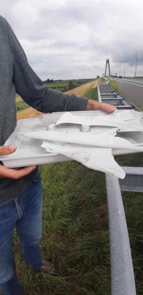 Bij vertrek afgelopen zondag zagen we dat een van onze dakluiken niet goed dicht ging omdat deze enigszins los zat van de hendel. Omdat we er vanuit zijn gegaan dat dit waarschijnlijk al een hele tijd was, zijn we gewoon vertrokken, in de hoop dat dit geen probleem zou zijn. Maar helaas hoorden we na een paar kilometer op een N-weg een harde klap en zijn we gestopt op een pechstrook. Wat bleek, het dakje was er vandoor gegaan en lag zo’n honderd meter verderop op de weg.