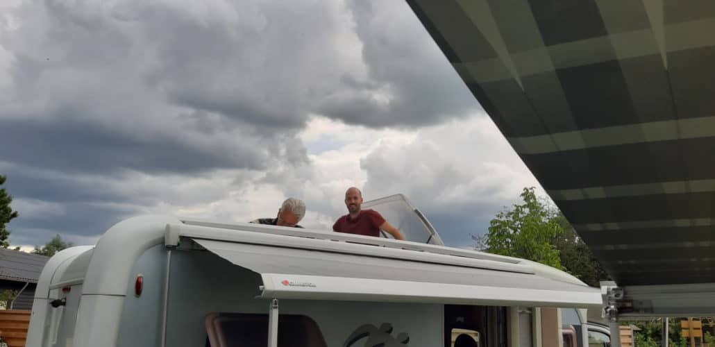 Harrie en Marion zouden deze week op woensdag bij ons langs komen, maar door ons berichtje over onze cabrio, hebben ze wat plaatsen overgeslagen en zijn ze meteen naar ons toe gereden. Met wat advies van de eigenaar van de camperplaats zijn we de volgende dag bij een camperzaak een nieuw (en veel beter en mooier) dakraam gaan halen. Samen met Harrie hebben we die er zelf weer ingezet en – tot op heden – is dat goed blijven zitten. De rest van de dag hebben we het gezellig gehad. Stiekem is het reizen in Nederland dan toch heel fijn. Dat familie eigenlijk altijd ‘in de buurt’ is.