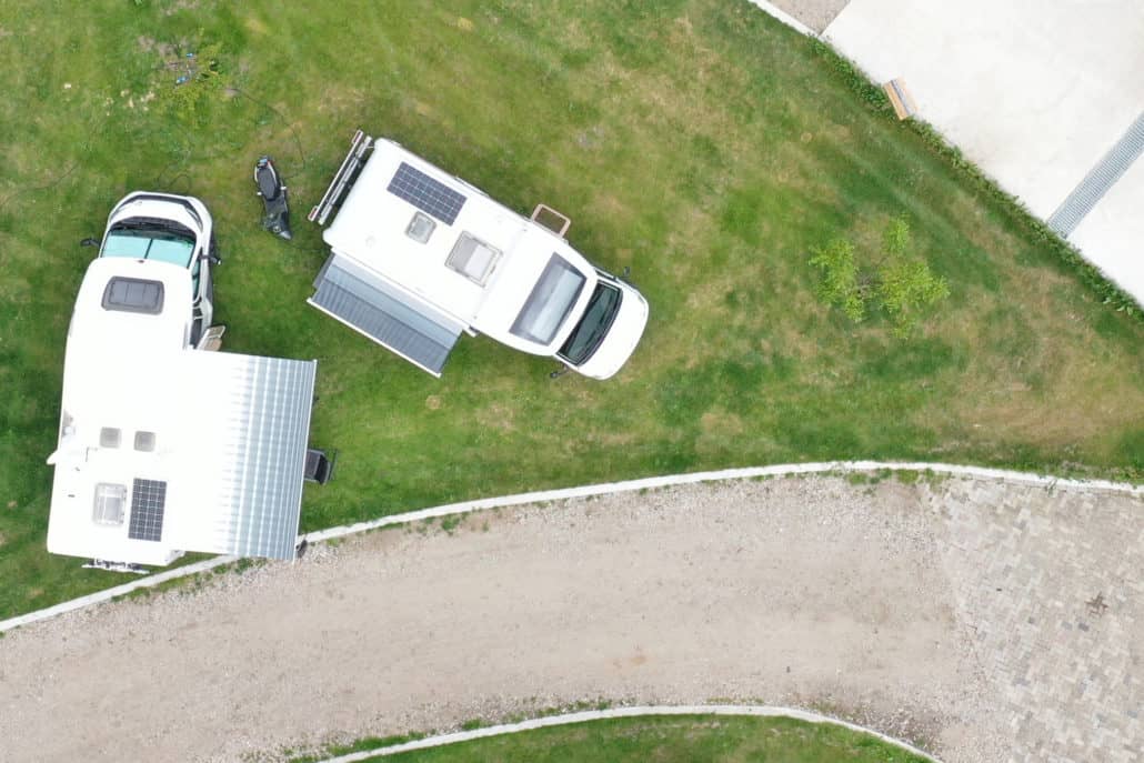 Tegen de tijd dat ik het van de weg kon halen was er inmiddels al wat verkeer overheen gereden, waardoor ik alleen de restjes van de weg kon halen. Gelukkig hebben we geen schade veroorzaakt bij het achterliggende verkeer. We zijn rustig doorgereden naar de camperplek waar we naartoe wilde gaan en een plekje hadden gereserveerd om een nieuw plan te maken.