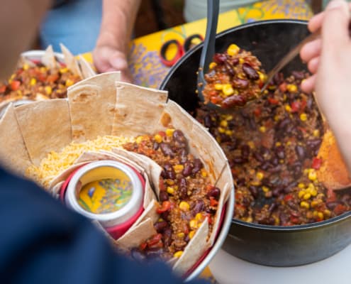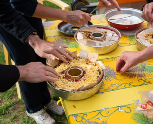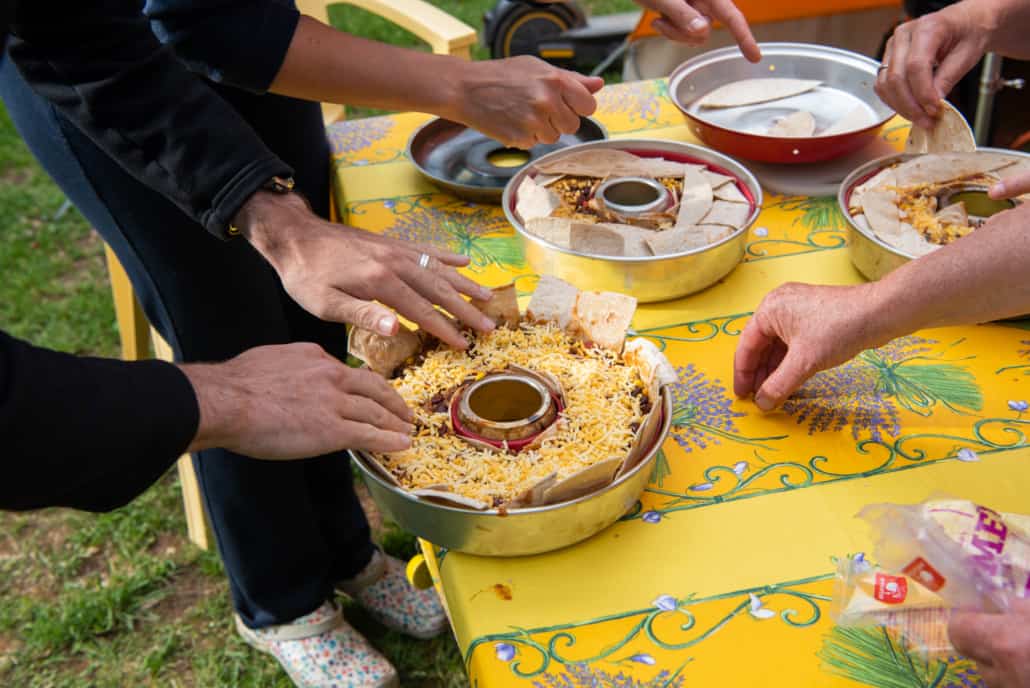 Het grote voordeel van de camping is het feit dat je met de hele familie bij elkaar kunt staan. Je hebt een eigen plek waar we met twaalf personen gezellig buiten kunnen zitten en eten. Iets wat bij een gewone camperplek lastig zal zijn.