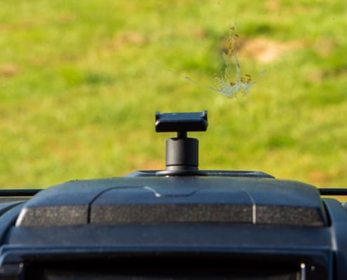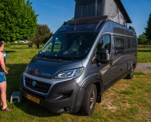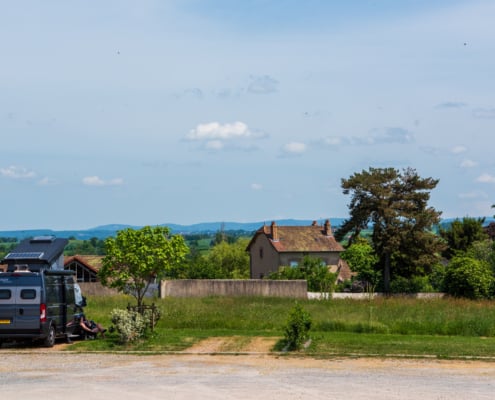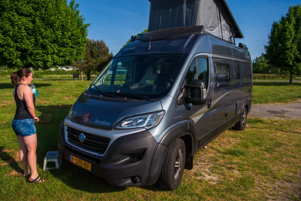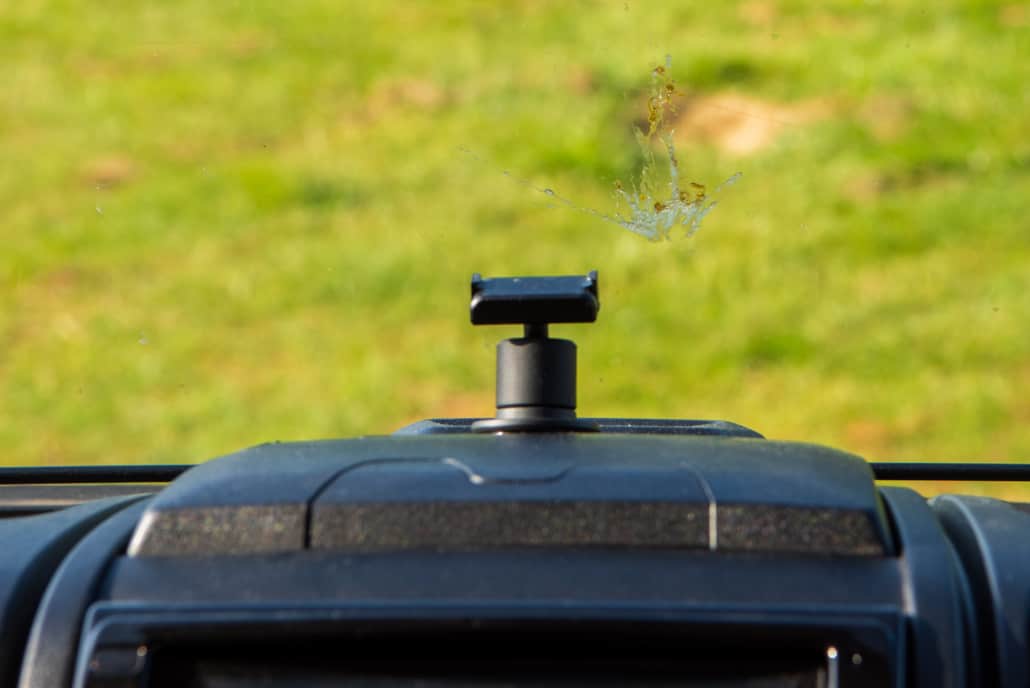 We bedachten ons ineens dat dit de eerste keer was dat we met de camper in het donker op doorreis waren. Vooral te merken aan het mindere zicht en de tientallen insecten die we onderweg op de motorkap en voorruit hoorden en zagen ‘botsen’. Bij de eerste twee vlekken dachten we dat een vogel op ons dak aan het meeliften was. De ruitenwissers konden het niet bijhouden en besloten af te wachten tot de ochtend om te zien wat de schade was.