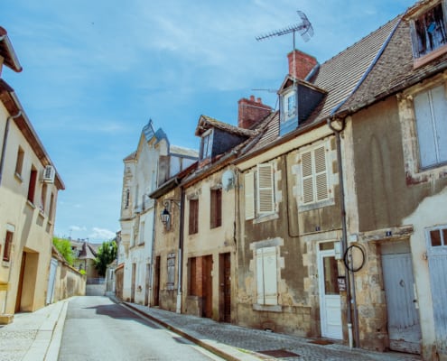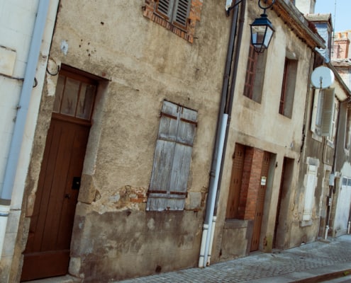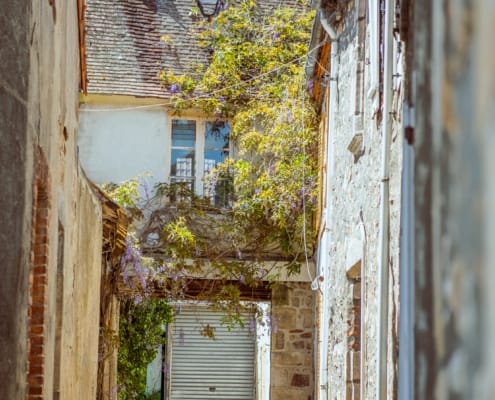 In de middaguren zijn hier in Frankrijk de meeste plekken gesloten, en dat maakte het dorp nog meer uitgestorven dan het anders al zou zijn. Er staan veel vervallen gebouwen en winkels leeg, anderen hebben waarschijnlijk pauze en openen vanavond weer.