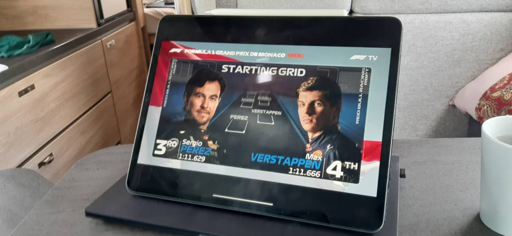 Voor vanmiddag stond ook weer een F1-race op de agenda. Gelukkig kwamen we ruim een uur voor de start aan op onze nieuwe camperplaats en de internetverbinding was hier perfect. Zo goed dat het zelf 40 keer sneller en stabieler was dan de WiFi van de camping waar we vandaag kwamen. En dat was maar goed ook, want door alle gebeurtenissen in Monaco duurde het iets langer dan gewoonlijk.