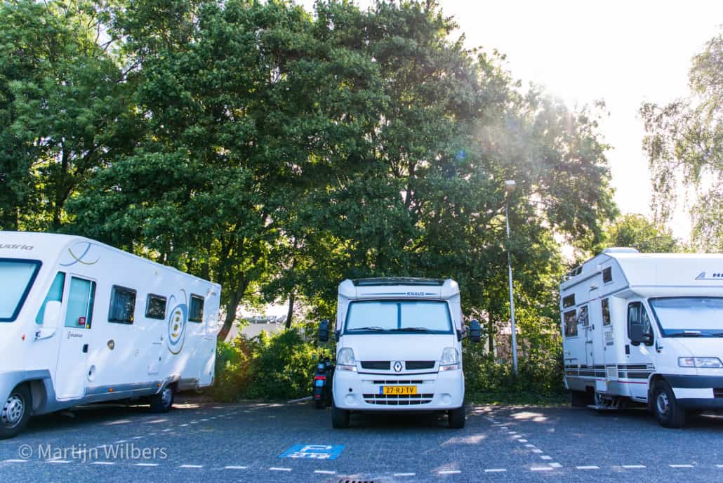 In alle vroegte hadden ook onze buren besloten om, waarschijnlijk met dezelfde reden, om half 9 al weg te rijden. Wij vertrokken zelf niet veel later via een kleine omweg om naar Appingedam te gaan. Bij aankomst stonden alle plekken helaas vol, maar omdat we zo vroeg waren zaten velen nog aan een ontbijt. We hebben even gewacht in de hoop dat er een camper na de maaltijd zou vertrekken. Gelukkig was dat ook zo en konden we ons installeren.