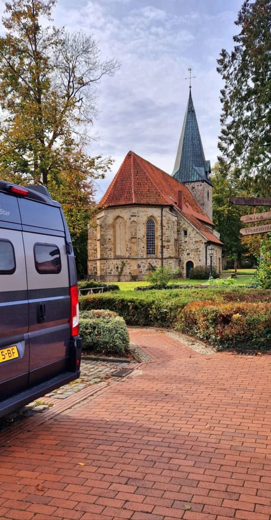 Er was op niet al te ver rijden nog een camperplaats die ik had gezien in Bippen en zo staan we hier. Heerlijk rustig bij een mooi oud kerkje.