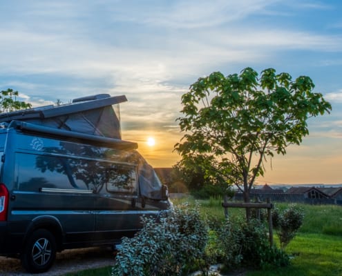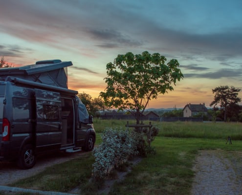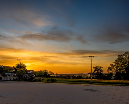 Ik pakte mijn camera en maakte wat foto’s van het uitzicht onze camper liep. Ook liep ik terug naar de kerk die gisteren niet zo mooi was blijven plakken op de foto. Nu met de ochtendzon was die beter belicht.